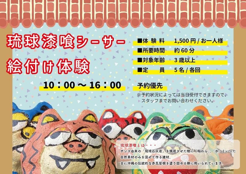 漆喰シーサーにカラフルに色付けして、オリジナルシーサーを作ってみませんか?(^_^)/